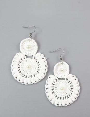 Estos pendientes presentan un diseño único y llamativo, que combina la forma clásica de un pendiente colgante con la textura y el encanto del crochet hecho a mano. El color blanco puro y atemporal le da a la pieza un toque de elegancia y sofisticación, haciéndola perfecta para añadir un toque de refinamiento a cualquier look, desde casual hasta formal. El detalle de perla central, dentro del círculo, añade un punto de brillo y feminidad, complementando el diseño con un toque clásico y elegante.