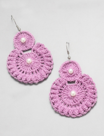 Estos pendientes presentan un diseño único y llamativo, que combina la forma clásica de un pendiente colgante con la textura y el encanto del crochet hecho a mano. El suave y romántico color lila le da a la pieza un toque de dulzura y ligereza, haciéndola perfecta para añadir un toque de encanto a cualquier look. El detalle de perla central, dentro del círculo, añade un punto de brillo y sofisticación, complementando el diseño con un toque clásico y elegante.