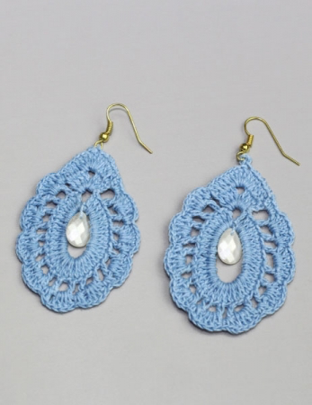 Estos pendientes presentan un diseño clásico y elegante en forma de lágrima, con un toque artesanal y moderno aportado por el crochet. El suave y delicado color azul bebé le da a la pieza un toque romántico y femenino, haciéndola perfecta para añadir un toque de encanto discreto a cualquier look. El detalle de cristal central, en el interior de la gota, añade un punto de brillo y sofisticación, complementando el diseño con un toque moderno.