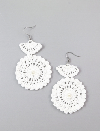 Estos pendientes presentan un diseño único y encantador, combinando la forma clásica de un pendiente colgante con la textura y el encanto del crochet hecho a mano. El color blanco puro y atemporal le da a la pieza un toque de elegancia y sofisticación, haciéndola perfecta para añadir un toque de refinamiento a cualquier look, desde casual hasta formal. El detalle de perla central, dentro del círculo, añade un punto de brillo y feminidad, complementando el diseño con un toque clásico y elegante.
