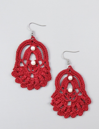 Estos pendientes presentan un diseño único y llamativo, que combina la forma clásica de un pendiente colgante con la textura y el encanto del crochet hecho a mano. El color rojo vibrante añade un toque de pasión y audacia a la pieza, haciéndola perfecta para añadir un toque de color y personalidad a cualquier look. El detalle de perla en el borde inferior añade un punto de brillo y sofisticación, complementando el diseño con un toque femenino y romántico.