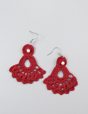 Estos pendientes presentan un diseño único y llamativo, combinando la forma clásica de un pendiente colgante con la textura y el encanto del crochet hecho a mano. El color rojo vibrante y apasionado añade un toque de audacia y personalidad a la pieza, haciéndola perfecta para agregar un toque de color y énfasis a cualquier look, desde casual hasta formal. El detalle de perla central, dentro del círculo, añade un punto de brillo y sofisticación, complementando el diseño con un toque clásico y elegante.