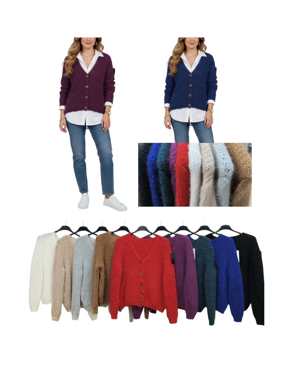 Casaco de malha com botões.