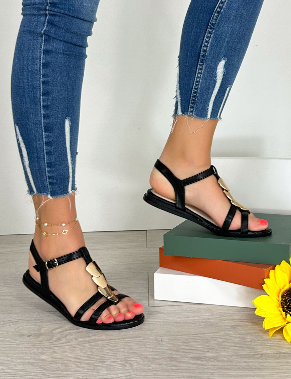 Sandalias de tiras bajas con detalle dorado en el empeine.